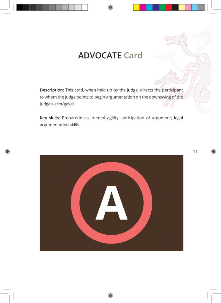 Traditional moot court training is often criticised for failing to adequately prepare advocates to be nimble-footed in the courtroom and able to respond quickly and responsively to unexpected situations. In contrast, Hydra, named after the serpent-like water monster with numerous heads in Greek mythology, hones legal argumentation skills, requiring participants to be Hydra-headed and skilled at rapidly analysing a legal issue from a variety of angles and perspectives, teaching advocates to be prepared for the unexpected. Inspired by Cobra, John Zorn’s improvised musical game piece, Hydra sharpens these skills by requiring participants to: