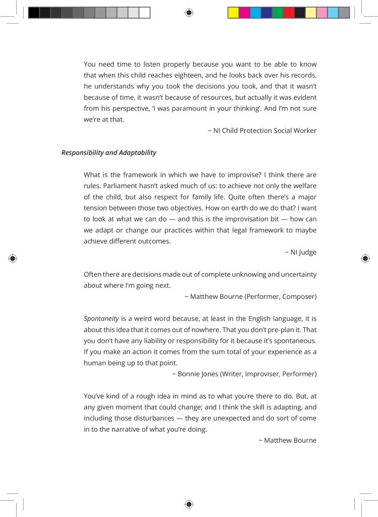 Into the Key of Law: Transposing Musical Improvisation. The Case of Child Protection in Northern Ireland seeks to realise the craft of improvising well via an attentive listening to the improvisational heart of Western common law and justice. Through this, the project aims to encourage more creative and responsive legal decision-making. The particular arena of attention in this instance is Northern Irish child protection law.