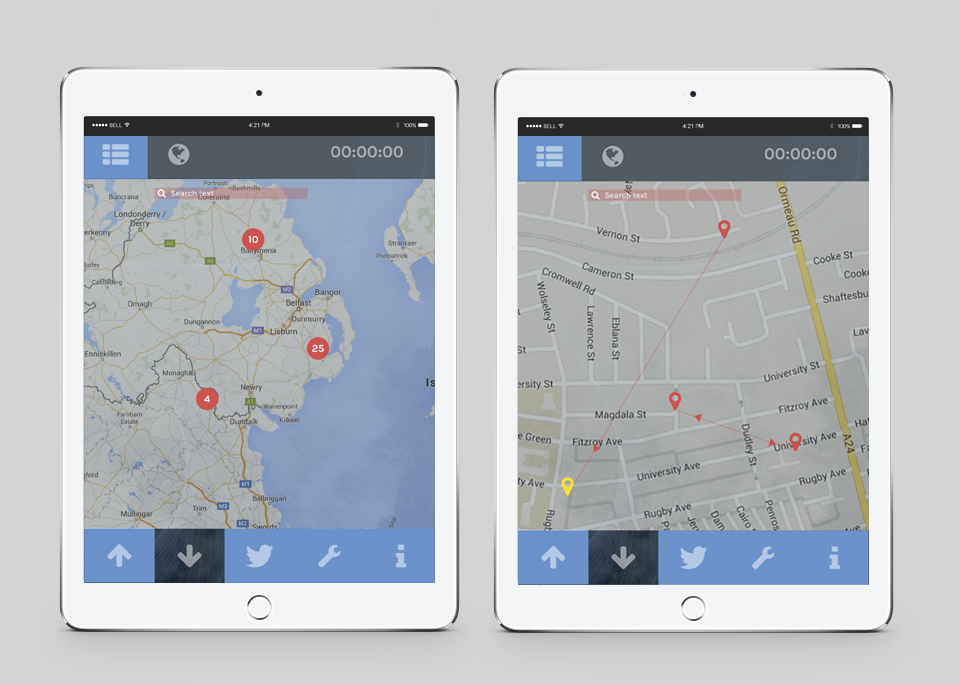 liveSHOUT allows users to interact with a global network of audio streams. By using the built in or external microphone on a mobile device, users can stream their sound environment as well as listening to any other online users. Users can listen to individual streams or mix up to three streams in a binaural mode. In the mixing mode, each stream is panned according to its location. This provides a “3 dimensional” audio mix, which changes dynamically according to the location of the listener in relation to the chosen streams. liveSHOUT has integrated Twitter functionality which allows for users to communicate and coordinate under #liveSHOUT.